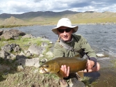 W tym roku lato w Mongolii było bardzo deszczowe i według Muruna, rzeki powinny nieść o połowę mniej wody. Chłopaki głównie łowili na spinning, bo na muchę dopiero się uczyli. Ja miałem tylko muchówki #5,7,9, ale przez wysoką wodę nie mogłem często dostać się do dołków pod skałami. Czasem lepszy był spinning, a czasem mucha, zależało od rzeki.